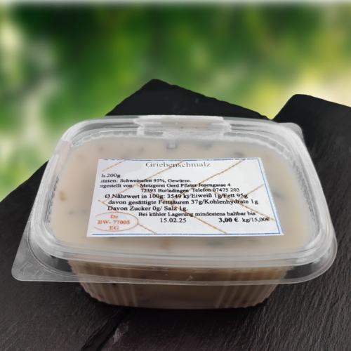 Schweinefett 95%, Kochsalz E535, Apfel, Röstzwiebeln, Schnittlauch, Gewürze.