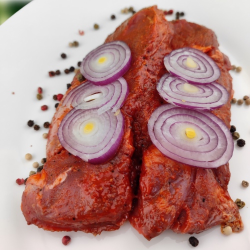 Konservierungsstoff: Kochsalz E 250. Saccarose, Gewürze, Senf.